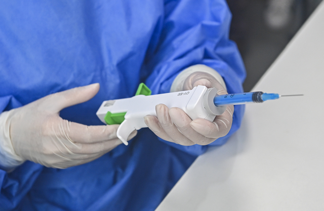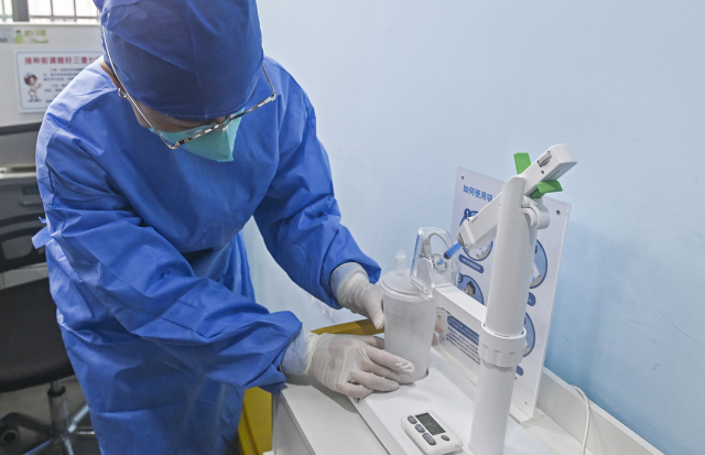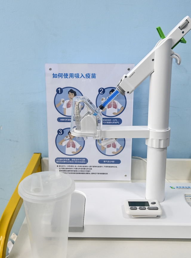 “前两针新冠疫苗打完,第三针因为工作忙耽搁了,一直没打。之前看到新闻,上海已有吸入式新冠疫苗,后来了解到杭州也要引入了,就马上预约了。”接种完毕后,坐在留观区的洪先生分享了接种感受,“上午预约后到医生这里接种,就像做雾化,医生将疫苗雾化后装入雾化杯。我深吸一口气,憋气5秒后就可以吐气了,整个过程大约10秒,比打针方便多了,身体也没有什么不舒服。”