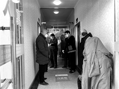 发热门诊门口排着十几个人的队伍,不少是和金大伯一样白发苍苍的老人,他们神色凝重,皲裂的手拿着医保卡,等着医生开诊。