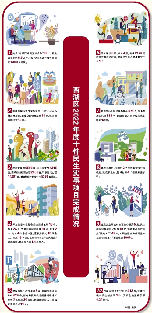 悠悠万事,百姓为大。翻开西湖区2022年的“共富账本”,一项项民生工程,见证着美丽西湖日新月异的面貌变化和群众持续攀升的幸福指数。