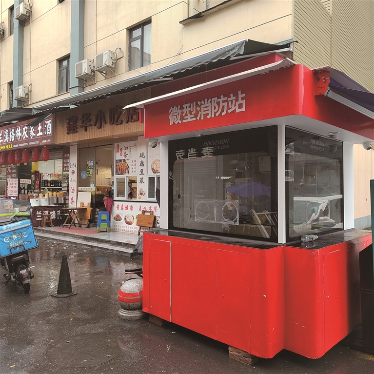 时间:2月9日 地点:杭州凤起农贸市场旁 杭州凤起农贸市场旁的核酸亭红色的亭身格外醒目,上面的名称“微型消防站”点名了它的新用途。里面存放着灭火器、灭火毯、防护手套、消防员专业装备等,这一改造让周边小店店主们感觉更安心了。