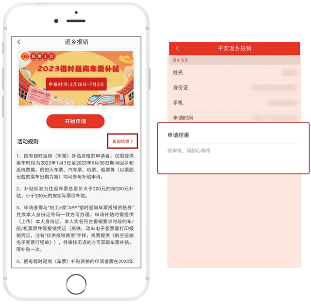车票补贴申请提交完成后,工作人员将在30个工作日内反馈审核结果,并在审核通过后的30个工作日内完成打款,用户可点击“查询结果”进行关注。