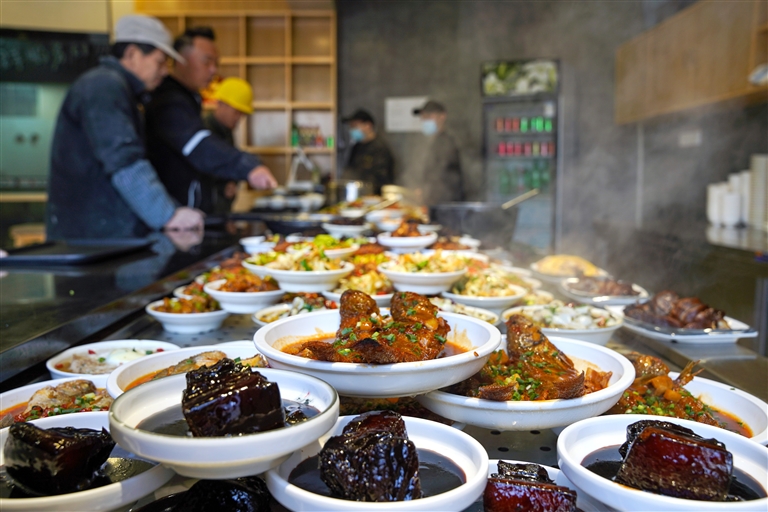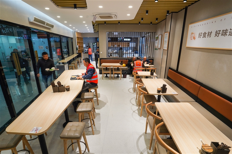 “味道怎么样?”“小炒里有肉丝、有豆腐干,也算有荤有素,味道很不错。”“一个菜够吗?”“这菜分量足,我等下再打一碗汤,添一碗饭,就吃得足够饱了。”看刘师傅大口拨拉饭菜的架势,就知道是干力气活的。不一会儿,他又去添了一碗饭一碗汤,很快就把桌上的饭菜吃得干干净净。“我每天都来这里吃,今天中午这餐只要10块钱,饭管饱,菜也好吃。你说哪里还能找到这样实惠的地方吃饭?”刘师傅心满意足地说道。