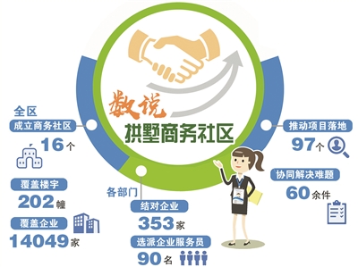 “既然是商务社区,与我们常见的居民社区肯定有区别。”拱墅区委组织部相关负责人介绍,“商务”二字,点明了服务对象是拱墅的企业;“社区”二字,形象地归纳了片区集成化服务的特点。