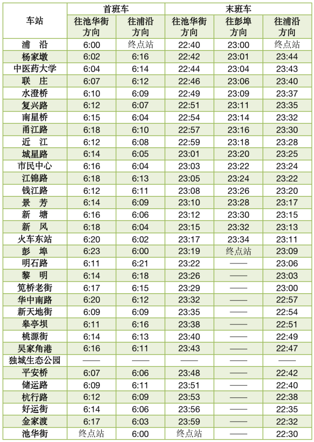 调整后的全线网首末班车时间表给大家整理好啦!请查收↓↓