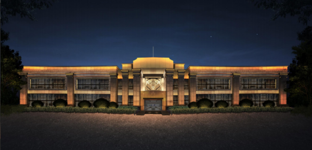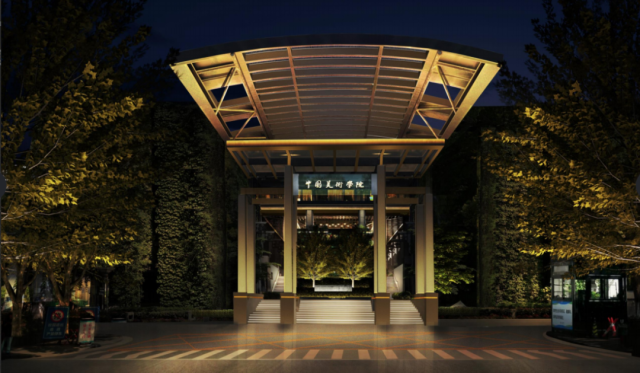 顶部界面采用洗墙方式凸显立面结构,并延伸沿街围墙洗墙灯,提升庄严形象。