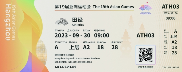 本届亚运会体育比赛门票采取多种防伪技术,易鉴别、难仿制,同时利用互联网、大数据、区块链等技术在验票、门票防伪等方面的智慧应用,为公众提供智能票务新体验。票务区块链用于记录门票从生产到使用的每个节点,持票观众可通过门票二维码实现信息溯源,纸质票直接扫码查看,电子票在票夹详情页点击查看。
