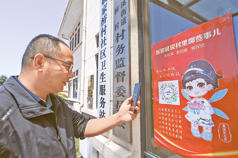 2023年初,浙江省湖州市长兴县画溪街道纪委利用数字平台创设乡镇线上廉心工作室、清廉直播间及“指尖监督”智慧平台,进一步畅通群众监督渠道,推进党内监督、群众监督、法律监督。图为村民扫码进入线上廉心工作室。 新华社记者 徐昱/摄