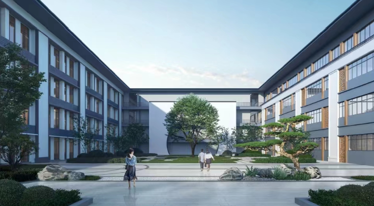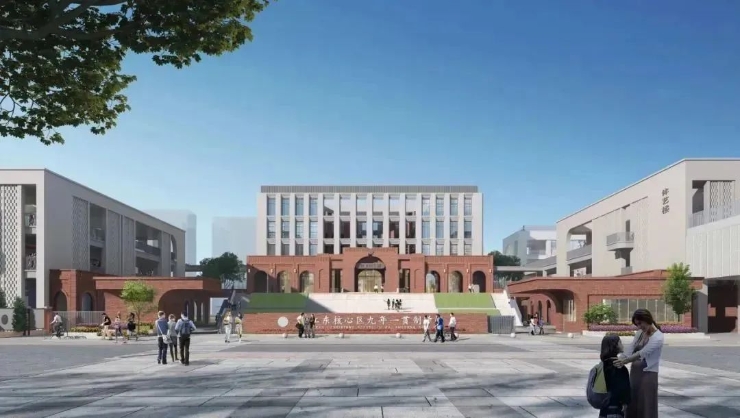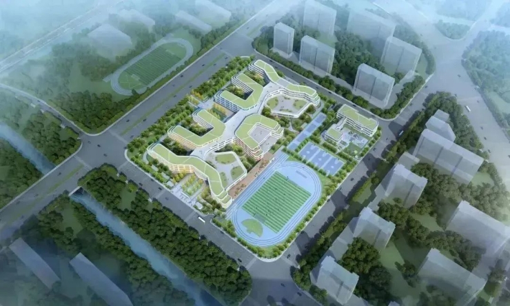项目位于义蓬街道大江东宝龙广场东侧,其办校规模为63个班,包含42个小学班级、21个初中班级,将建设教学楼、实验室、图书馆、食堂、宿舍、室内外运动场地、室外道路广场景观及其他配套设施。
