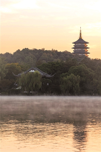 昨天早上,西湖水面上的雾气犹如仙境。记者 夏阳 摄