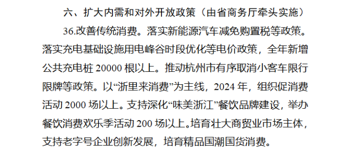 在征求意见稿中,提出了扩大内需和对外开放政策的相关内容,由浙江省商务厅牵头实施,其中就有“推动杭州市有序取消小客车限行限牌”的表述。
